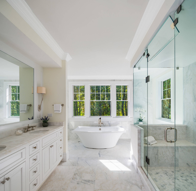 ถ้าห้องน้ำของคุณสามารถมองเห็นวิวธรรมชาติได้ อย่าลังเลที่จะติดตั้งหน้าต่าง (แน่นอน คุณสามารถติดตั้งม่านเพื่อความเป็นส่วนตัว) เพื่อนำเอาแสงธรรมชาติเข้ามาในห้องน้ำ และช่วยเรื่องการระบายและถ่ายเทอากาศด้วย ที่สำคัญ ช่วยให้ห้องน้ำของคุณดูกว้างขึ้นและน่าใช้งานมากยิ่งขึ้น