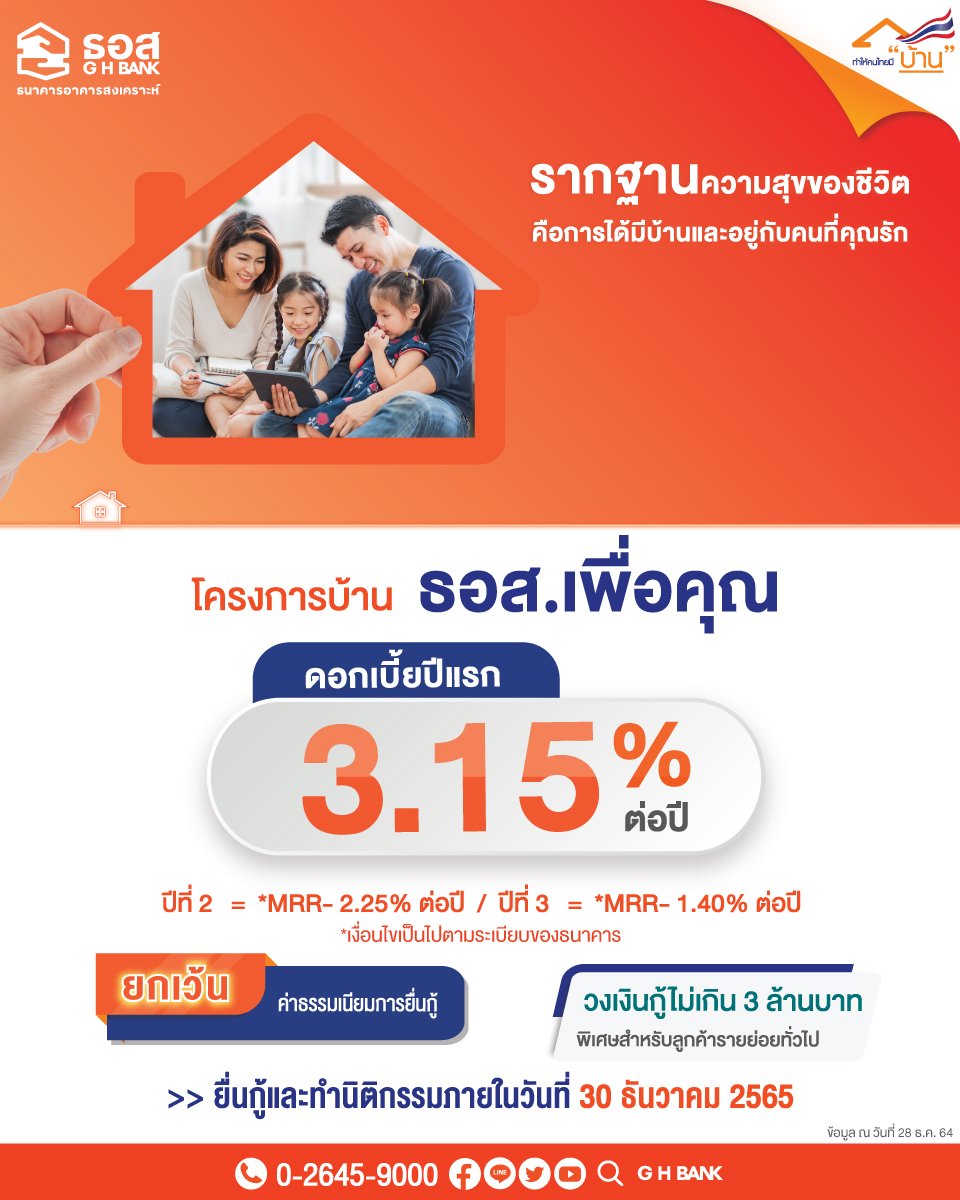 - สานต่อความสุขของการมีบ้าน สำหรับคนที่มีงบประมาณจำกัด กับ “โครงการบ้าน ธอส. เพื่อคุณ” โครงการสินเชื่อบ้านสำหรับผู้ที่มีรายได้ไม่เกิน 35,000 บาทต่อเดือน