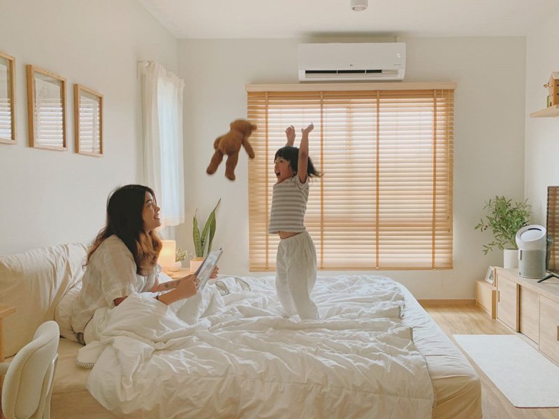 จากประสบการณ์ชอบเที่ยวญี่ปุ่นและความหลงใหลไอเดียแต่งบ้านของญี่ปุ่น จึงเป็นที่มาของการตกแต่งบ้านมินิมอลสไตล์ญี่ปุ่น ของ คุณ Mom Diary ภายในบ้านเน้นแสงธรรมชาติและโทนสีขาวสว่าง ตัดกับเฟอร์นิเจอร์โทนสีน้ำตาลอ่อน มีมุมรวมภาพถ่ายครอบครัวและการท่องเที่ยว เพิ่มพื้นที่ซักล้างอุปกรณ์ครัวด้านข้างครัว และมีห้องของเล่นสำหรับลูกชายตัวน้อย